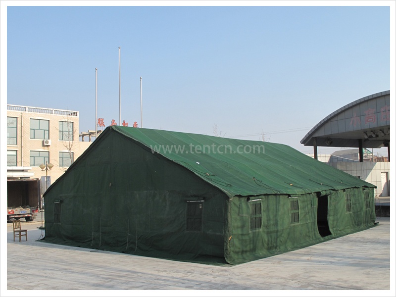 該帳篷穩(wěn)定性優(yōu)良,抗風(fēng)承載能力強(qiáng),安全可靠。結(jié)構(gòu)簡(jiǎn)單,組裝方便,采用套管式通頭、彈簧插銷連接,同類桿件可以互換,無需任何組裝工具。篷布采用滌綸草綠(林地?cái)?shù)碼)防水帆布,防水效果好。保溫隔熱、通風(fēng)性能好,寒區(qū)、熱區(qū)通用??煽v向拓展,即將兩頂帳篷的一面山墻拆除,拼接成一頂帳篷,使用面積擴(kuò)大一倍。